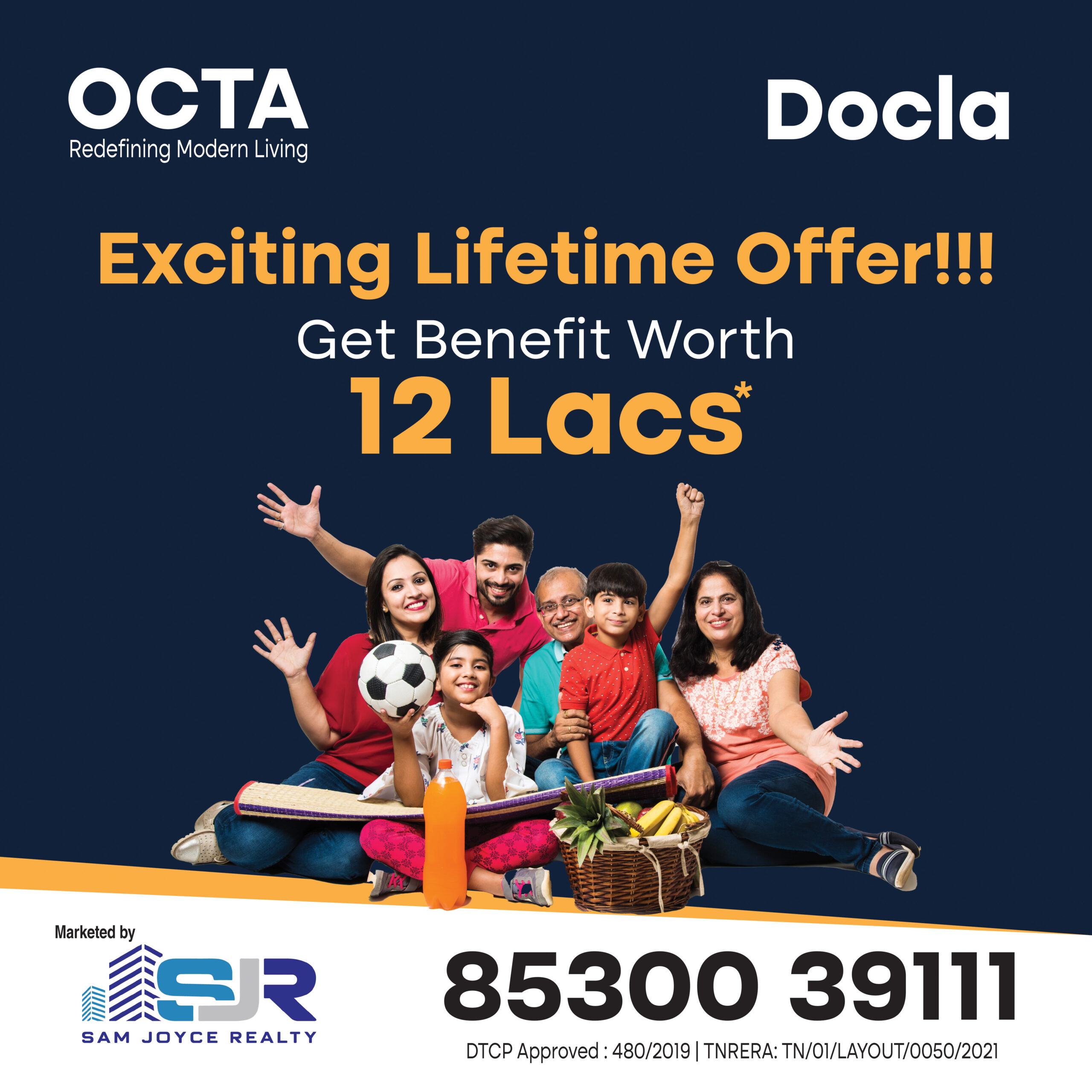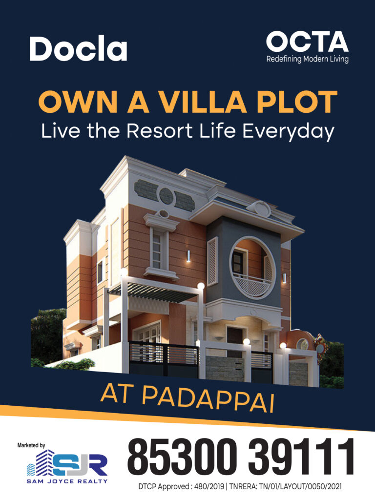 DTCP approved “Octa Docla” a premium gated community in the heart of Paddappai, having a land extent of 5.52 acres holding within itself 106 plots ranging from 561 Sq.ft to 5980 Sq.ft with various sizes in between suiting the requirement of various buyers.