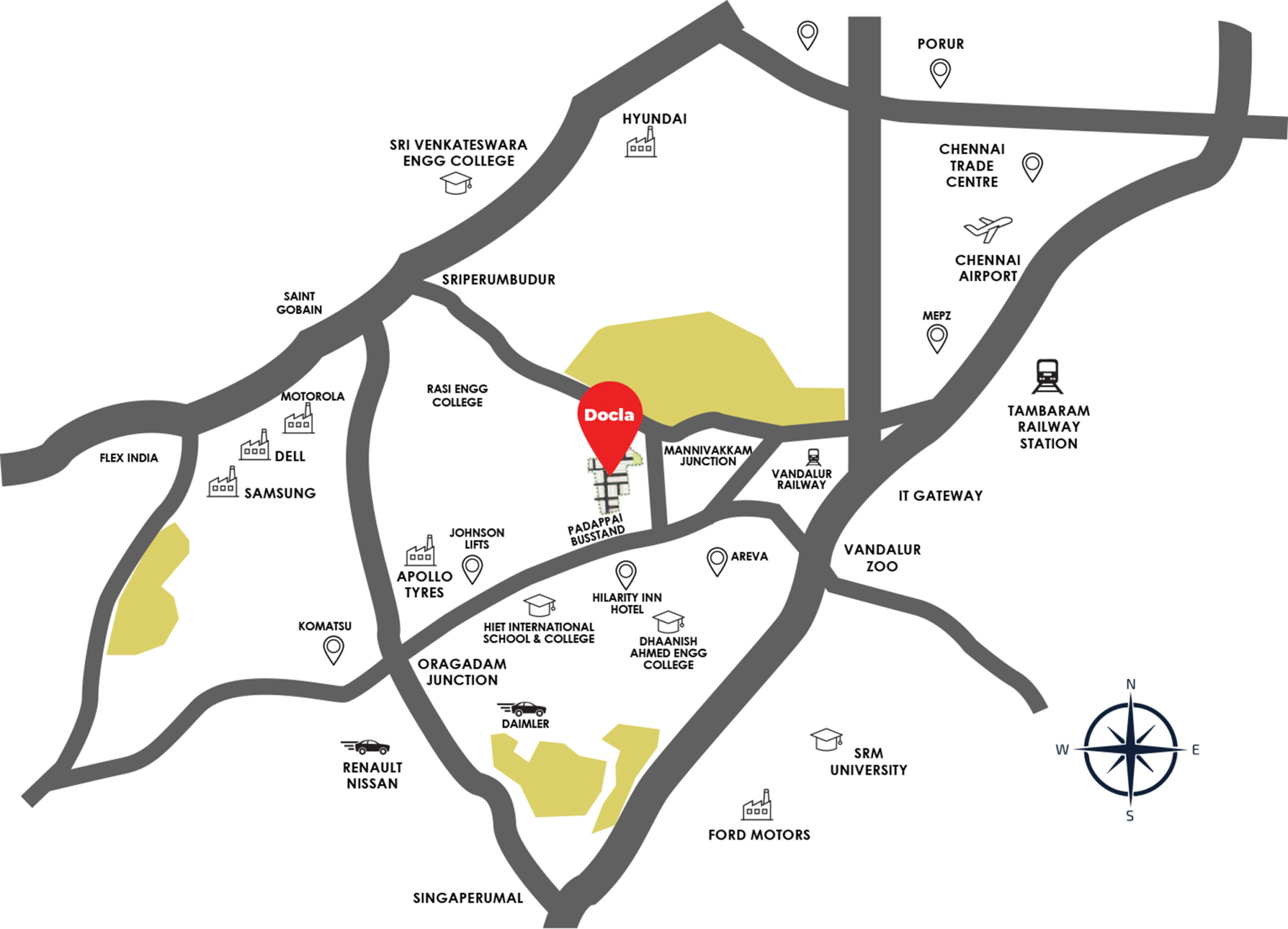 - Strategically located between Shriram Gateway IT Park and Oragadam SIPCOT covering both IT and Automobile sectors.